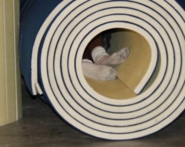 Este corpo aí na foto é de Kendrick Johnson. Ele foi encontrado enrolado em uma esteira de ginástica em Lowndes County High School, no sul da Geórgia, em janeiro de 2013. Segundo a perícia, depois de cair na esteira, na tentativa de recuperar uma sapatilha, Johnson ficou sufocado. Só que um tempo depois, descobriram que os órgãos internos do rapaz foram recheados com jornal e a família começou a suspeitar de assassinato. Até hoje não solucionaram o caso.